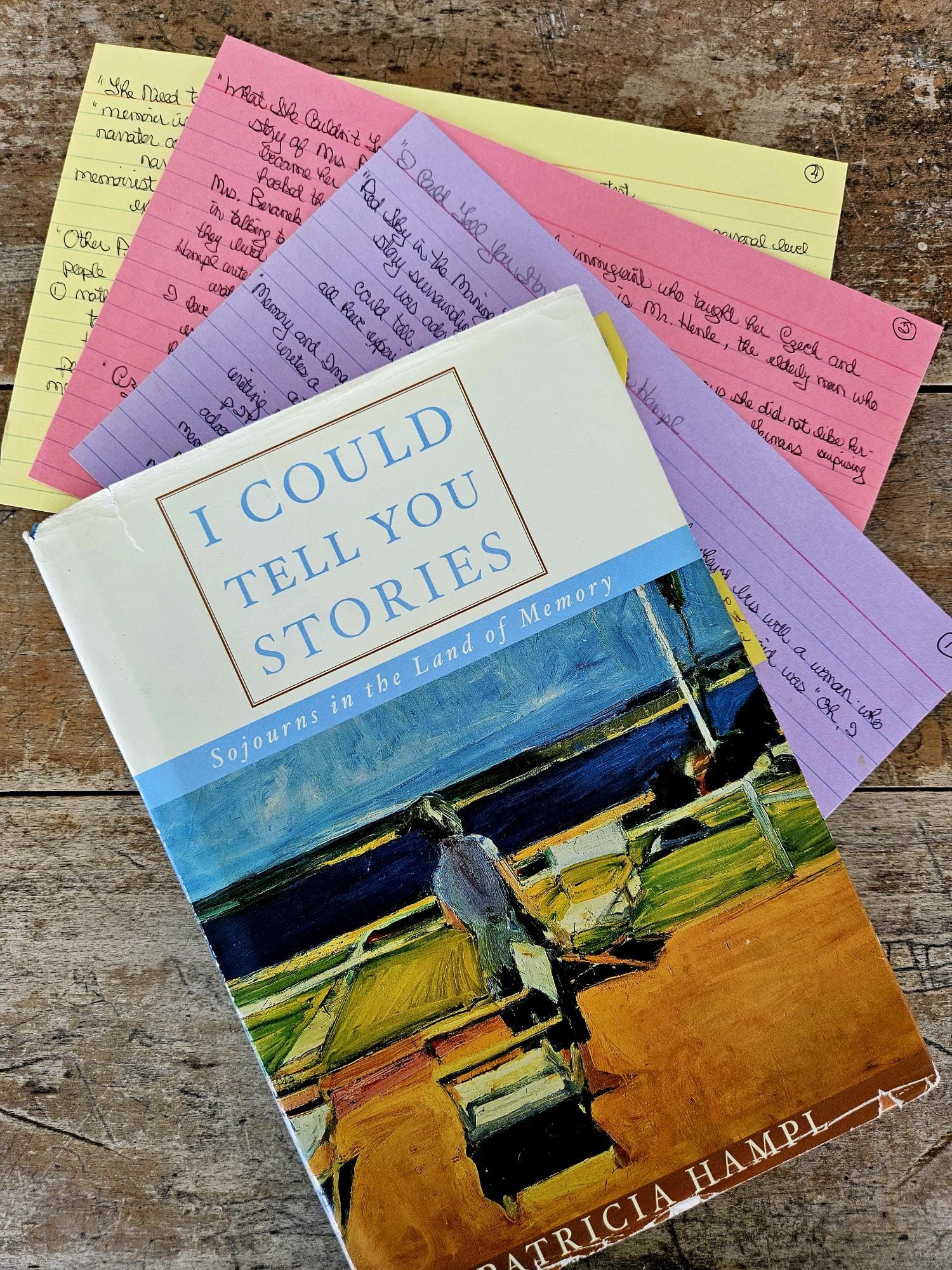 Today, I visited some old book friends from my grad school days and lingered on a collection of essays by Patricia Hampl titled I Could Tell You Stories. Tucked inside were my large index cards, full of notes from my first study of this book.