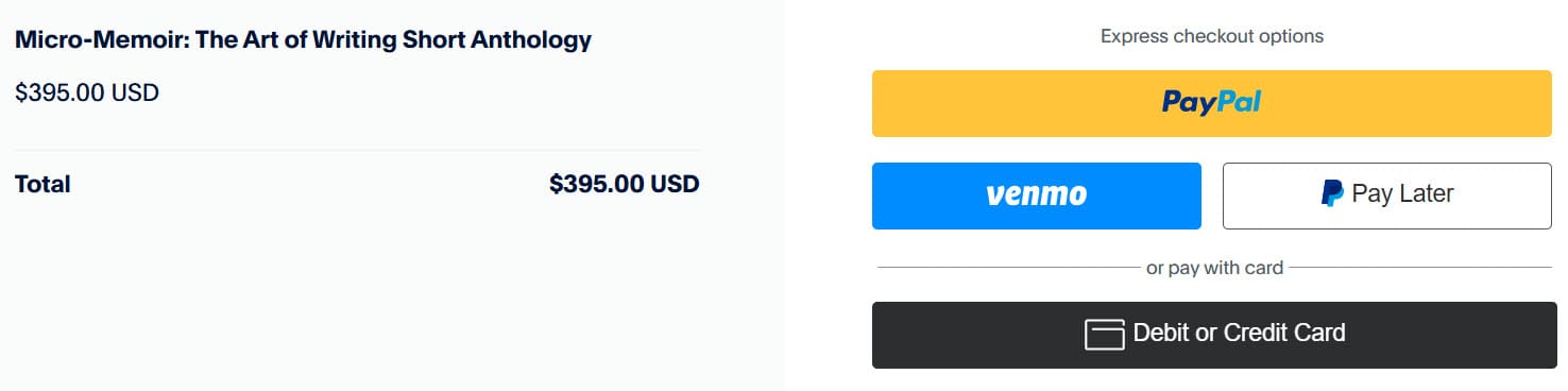 If you have a PayPal or Venmo account, sign in to proceed. If you do not have a PayPal or Venmo account, click on Pay with Debit or Credit Card and enter your payment data.