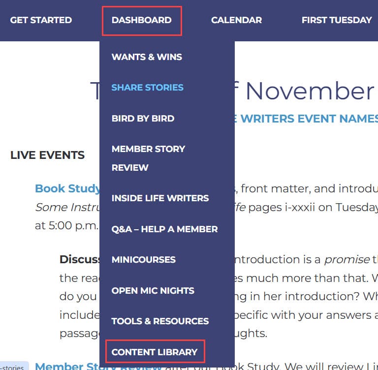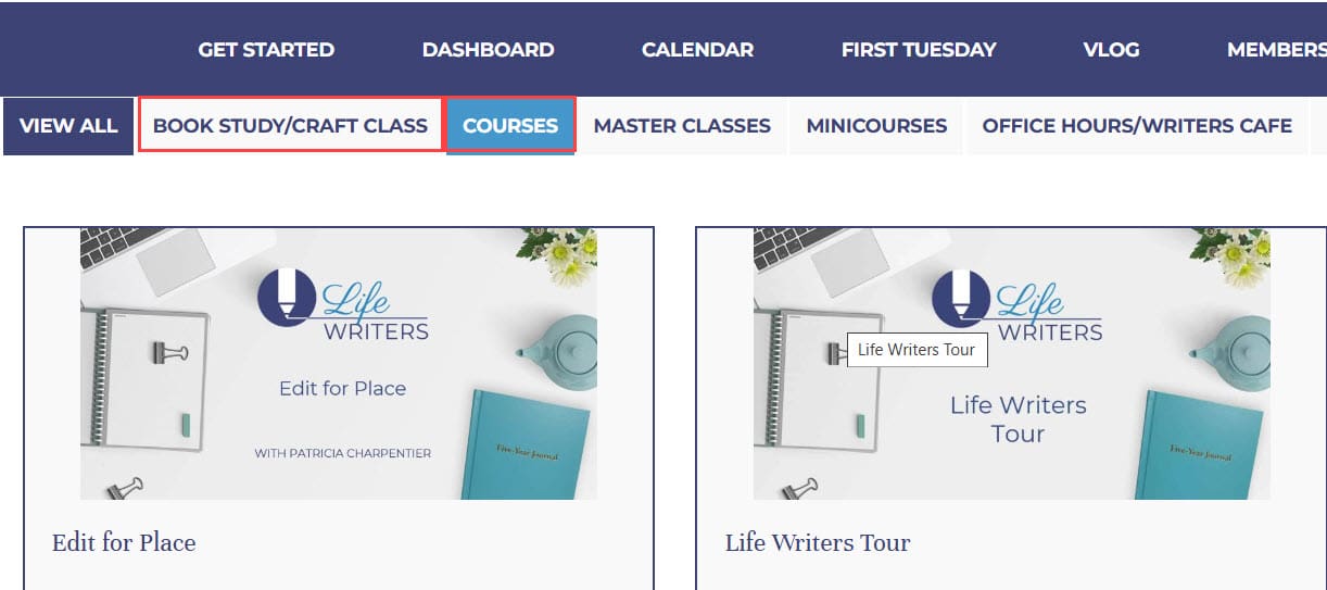 Locate the courses for the two micro-memoir books we studied, Places We Left Behind and Heating & Cooling, under Book Study/Craft Classes in the Content Library. Scroll down to the bottom to find these courses and our current book, Bird by Bird: Some Instructions on Writing and Life.