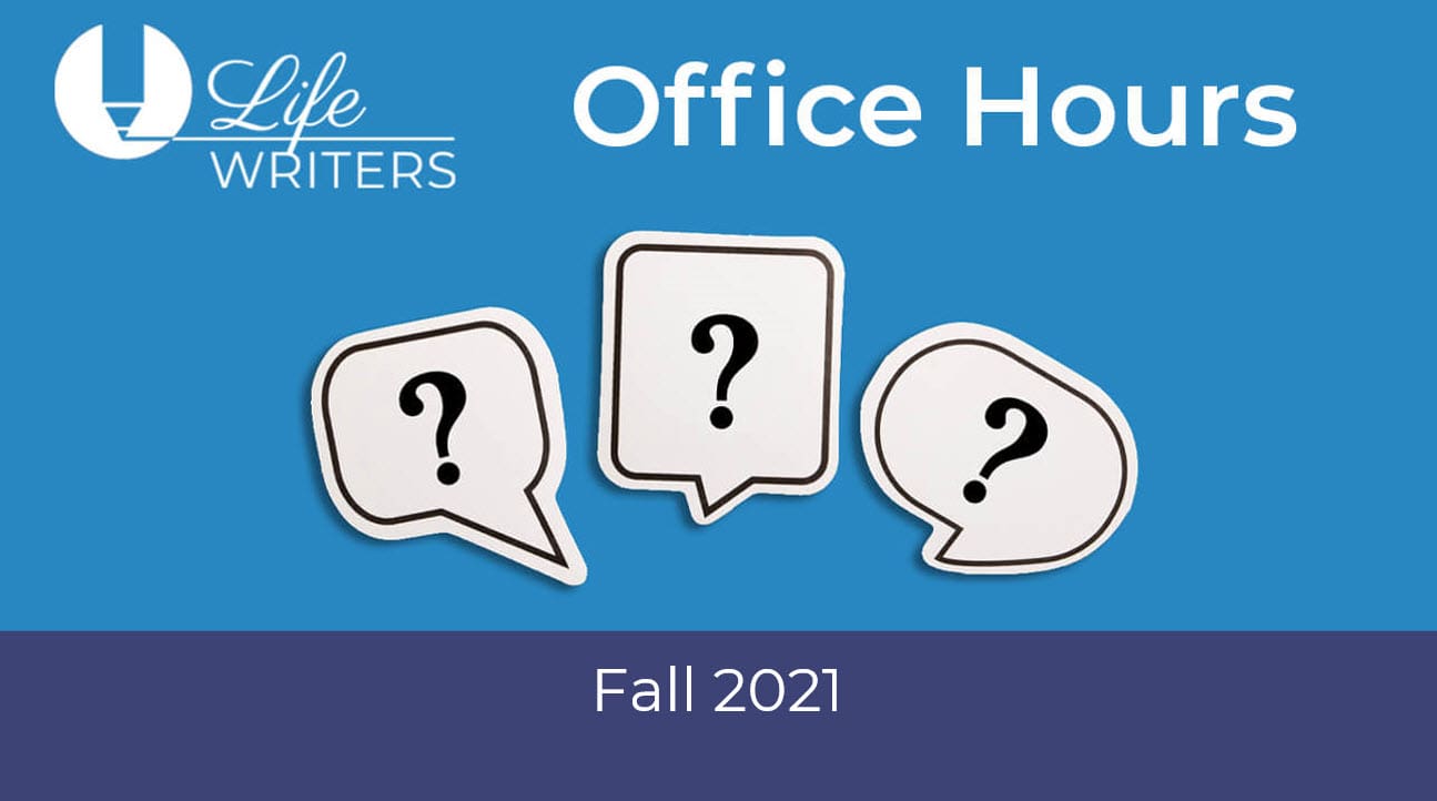 Missed a Life Writers session from our Fall 2021 session? Want to watch a replay because the meeting was so good? No problem. All Life Writers’ office hours sessions are recorded and posted here. Click on the desired session and hit play. Enjoy!