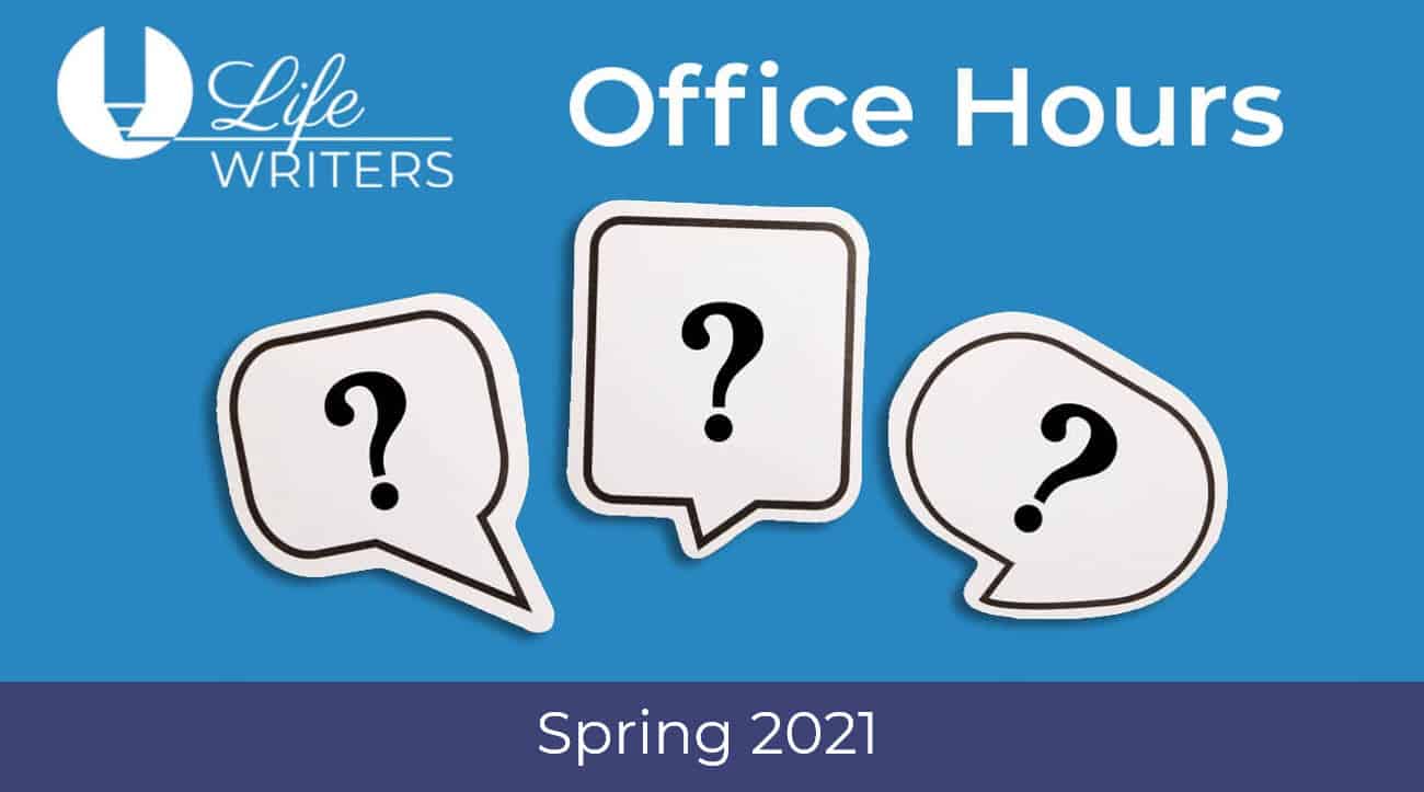 Missed a Life Writers session from our Spring 2021 session? Want to watch a replay because the meeting was so good? No problem. All Life Writers’ office hours sessions are recorded and posted here. Click on the desired session and hit play. Enjoy!